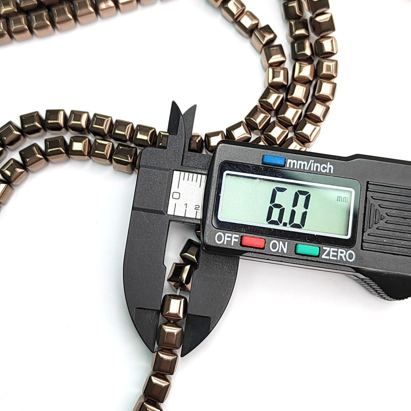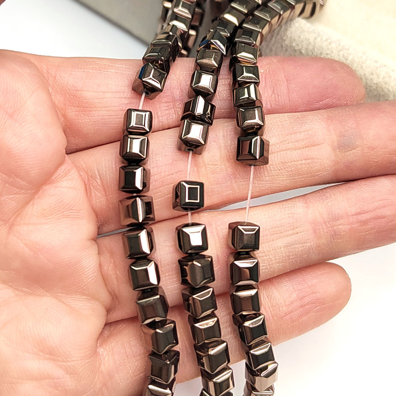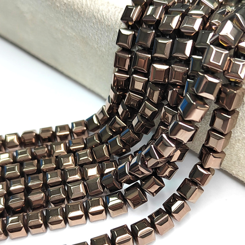 Гематит кубик 6 мм, цвет Шоколад, нить 40 см