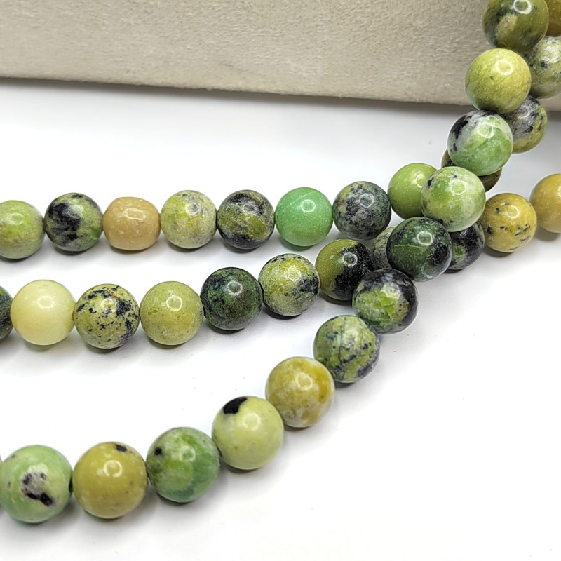 8,5 мм Хризопраз натуральный, гладкий шар, нить 38-39 см