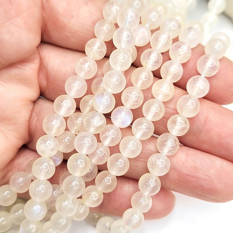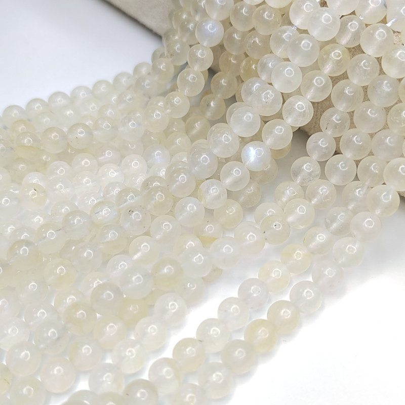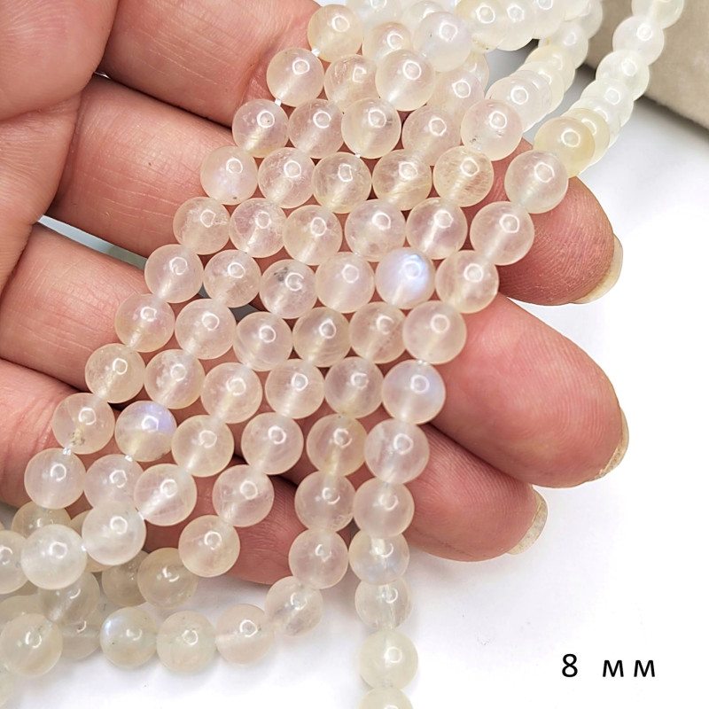 Натуральный Лунный камень, форма бусин - гладкий шар.