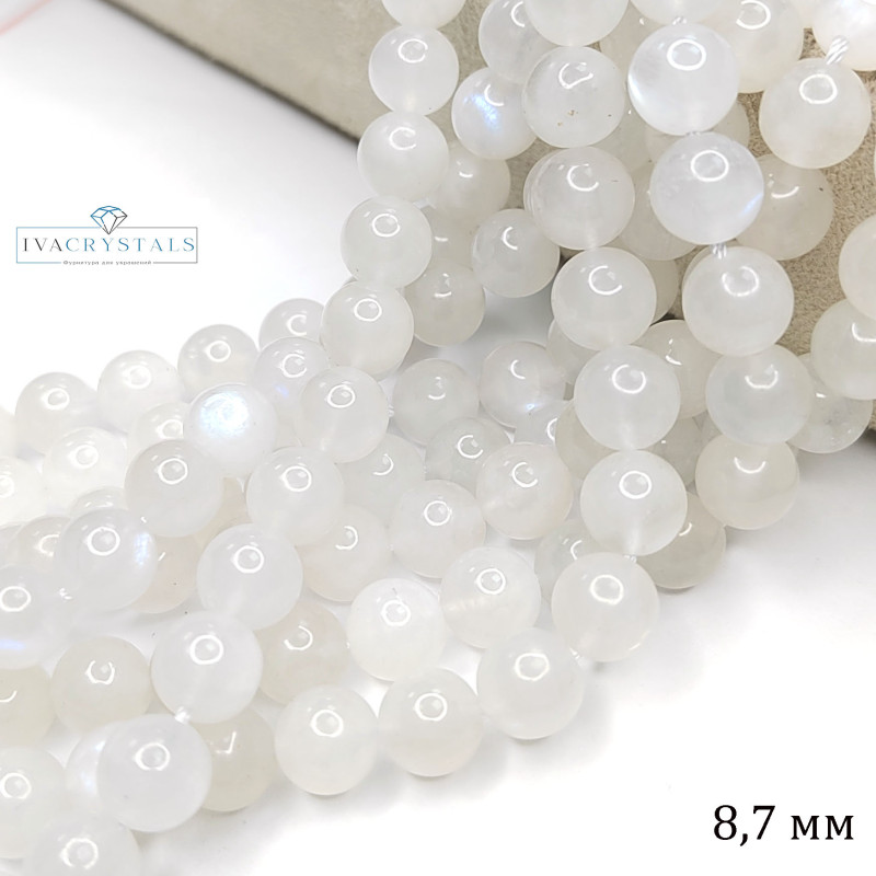 Купить 8,7 мм Лунный камень натуральный, нить 39 см вы можете в компании iva_crystals, оформив заказ в интернет магазине, или