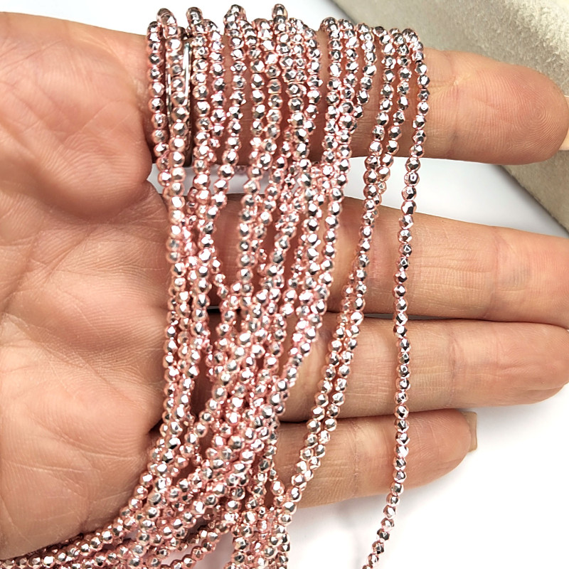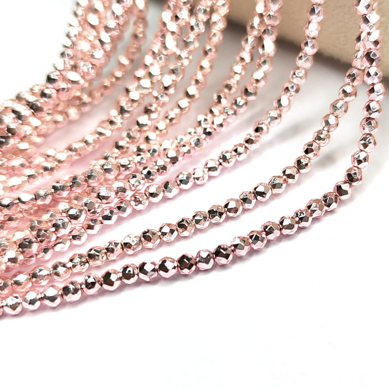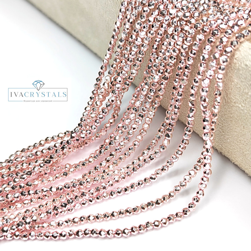 Пирит 2 мм в огранке, Цвет Розовый, нить 42 см