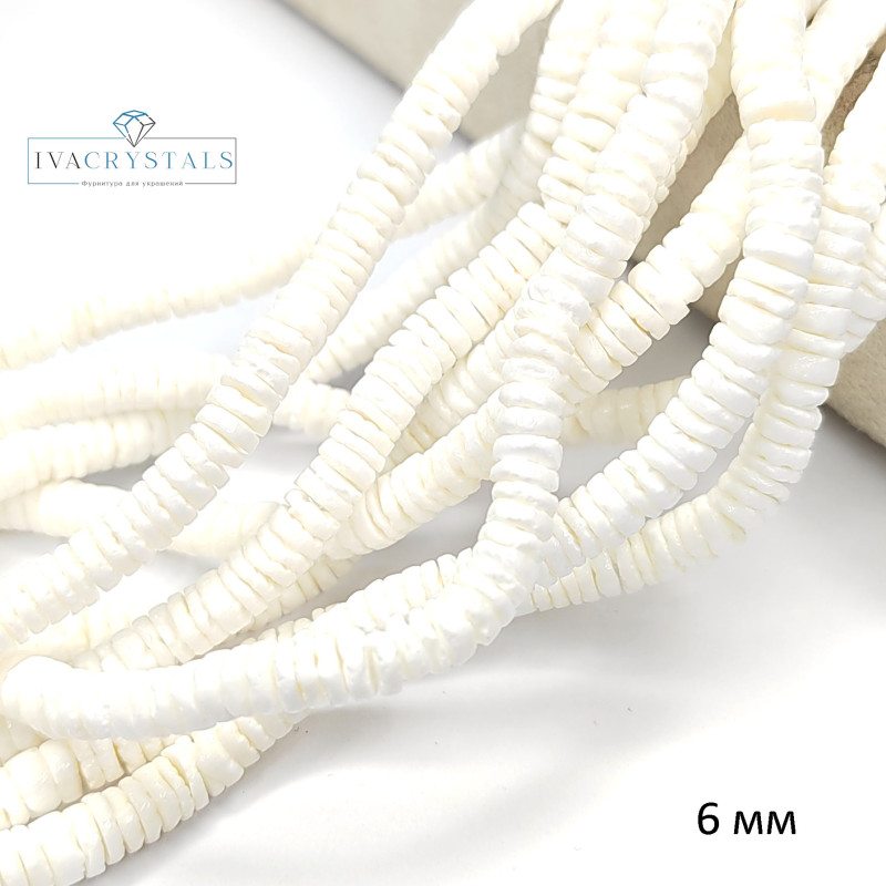 Купить Ракушечник круглой формы 6 мм, цвет Белый, НИТЬ 60 см вы можете в компании iva_crystals, оформив заказ в интернет магазине, или