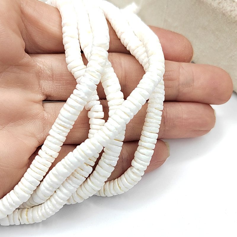 Ракушечник круглой формы 6 мм, цвет Белый, НИТЬ 60 см