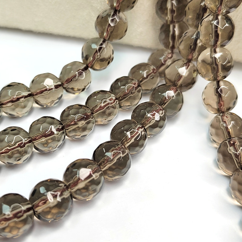 Раухтопаз натуральный, Дымчатый кварц 10 мм, нить 38 см
