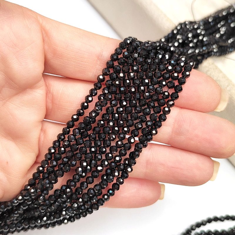 Купить 3 мм Шпинель натуральная черная граненая, НИТЬ 38 см вы можете в компании iva_crystals, оформив заказ в интернет магазине, или