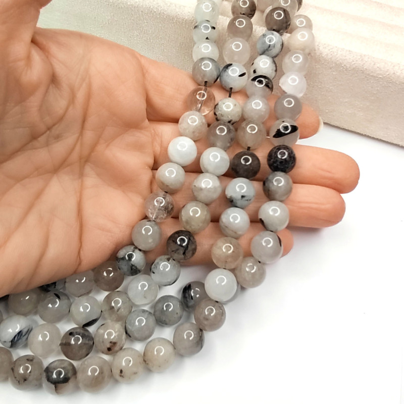 Бусины рутилового кварца (Волосатика) натурального, форма гладкий шар.
