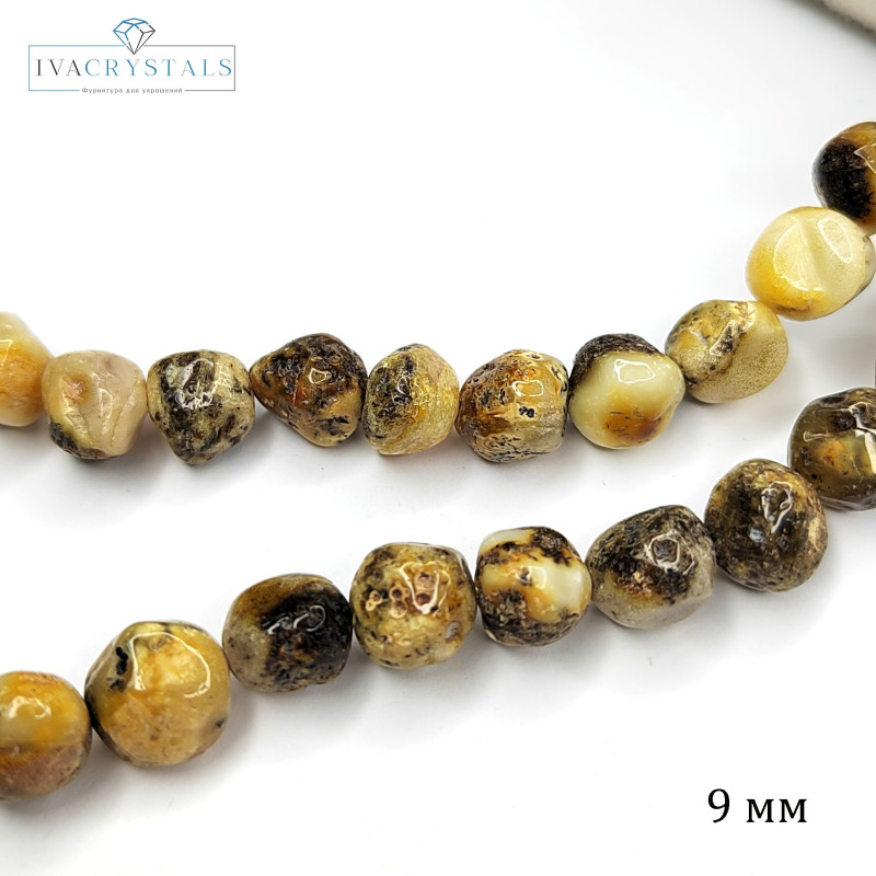 Янтарь природный натуральный 9 мм, нить 44,5 см