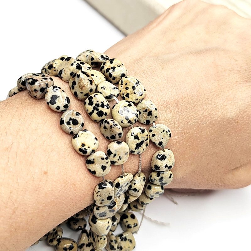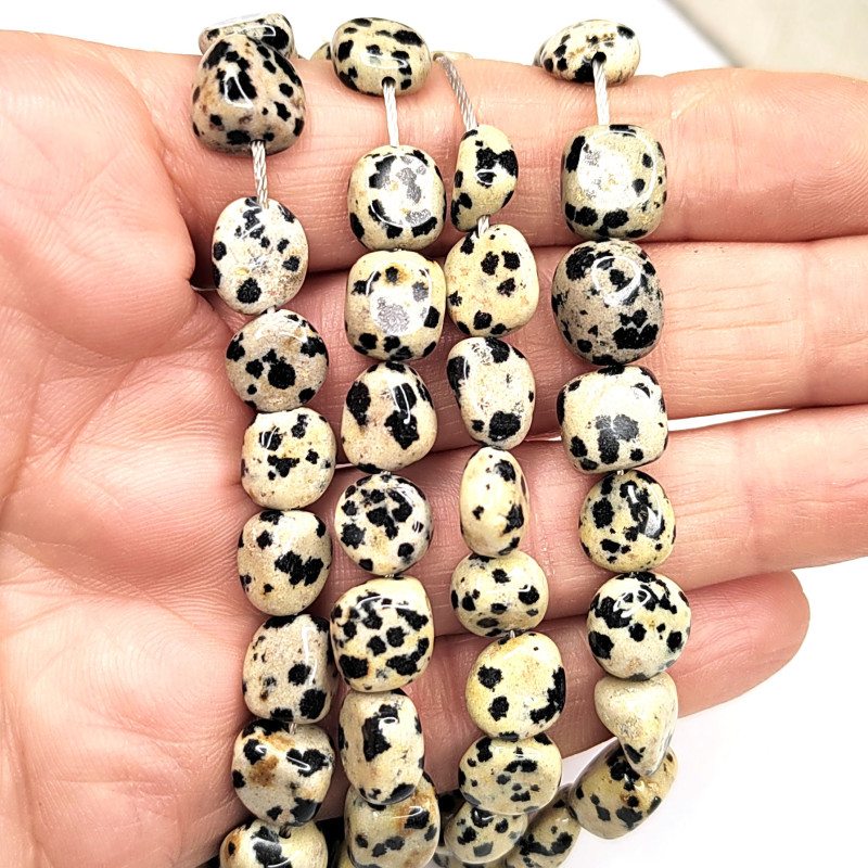 Яшма далматиновая, форма бусины - галтовка