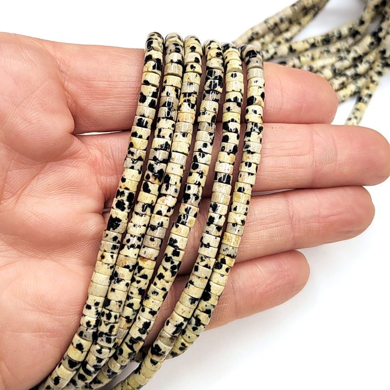 Яшма далматиновая натуральная 4х2,5 мм, Рондели, НИТЬ 38 см