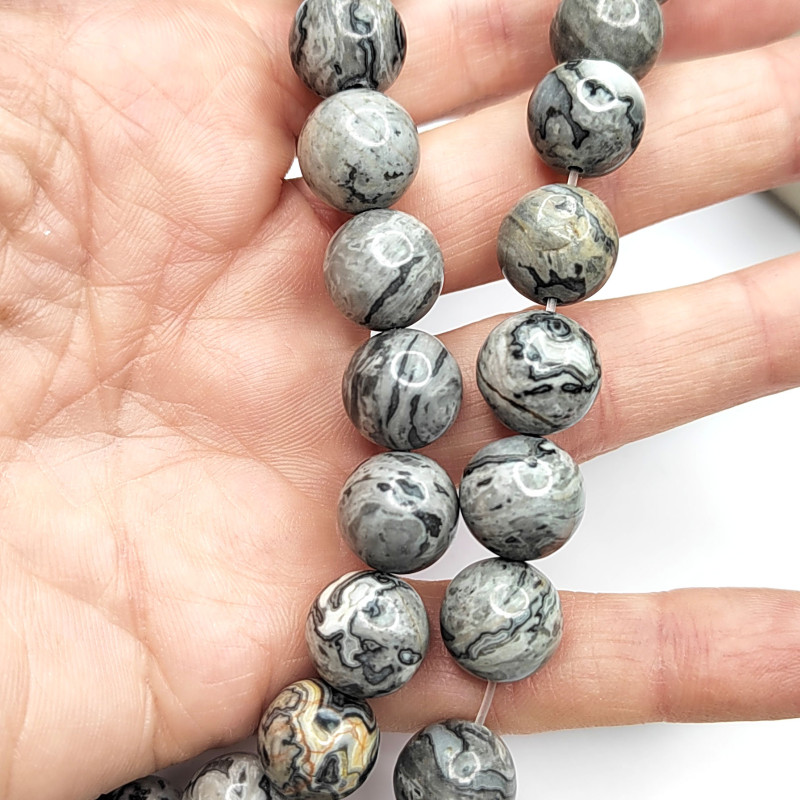 Яшма серая натуральный камень , форма бусины - гладкий шар.