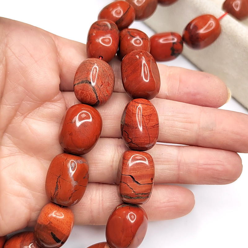 Яшма красная натуральная, бусины галтовка - бочонок, оливка