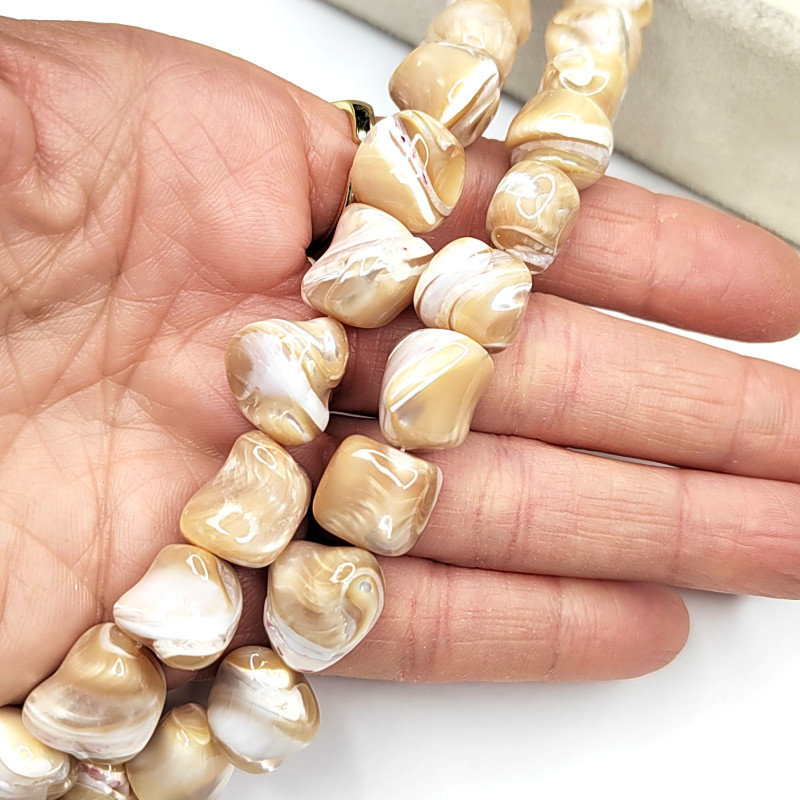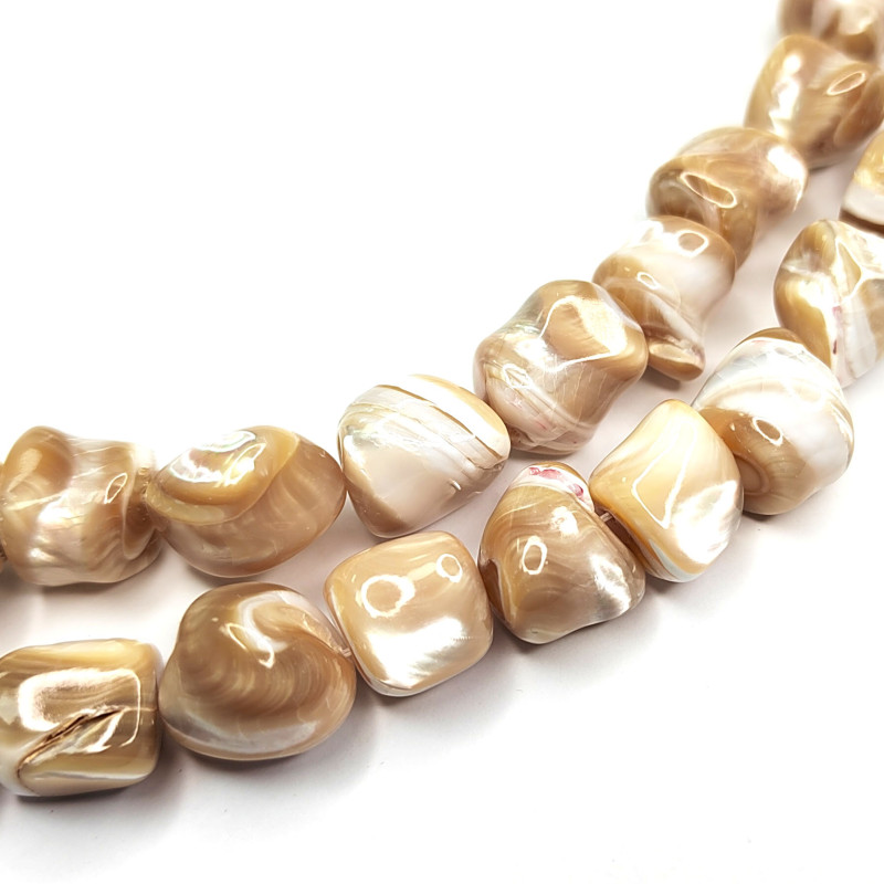 Перламутр натуральный 15х11 мм Галтовка, цвет карамельный, нить 39 см