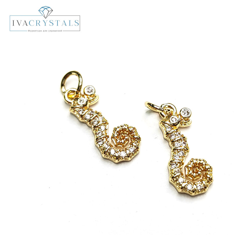 Подвеска Морской конёк 17х8 мм с фианитами, штука
