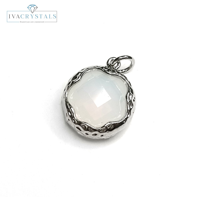 Купить Подвеска круглая 14 мм с ювелирным стеклом, цвет опалит, оправа с родиевым покрытием, штука вы можете в компании iva_crystals, оформив заказ в интернет магазине, или