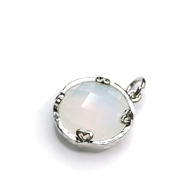 Подвеска круглая 14 мм с ювелирным стеклом, цвет опалит, оправа с родиевым покрытием, штука