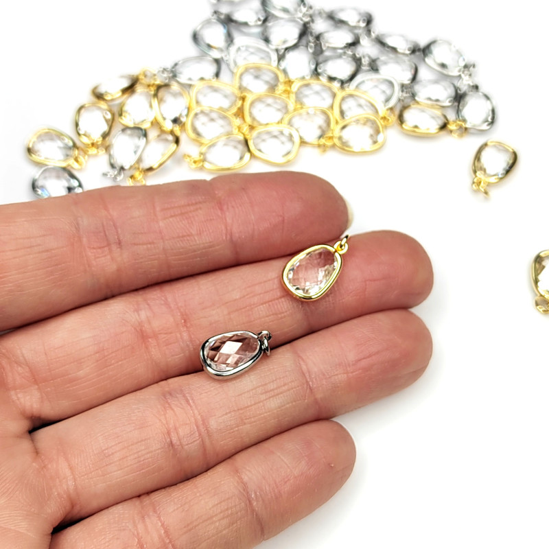 Подвеска Капля 13х8 мм с ювелирным стеклом, штука