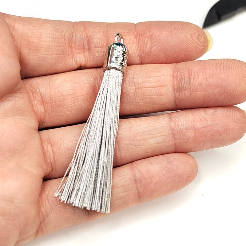 Подвеска Кисть Серая 6 см из вискозного шелка, штука