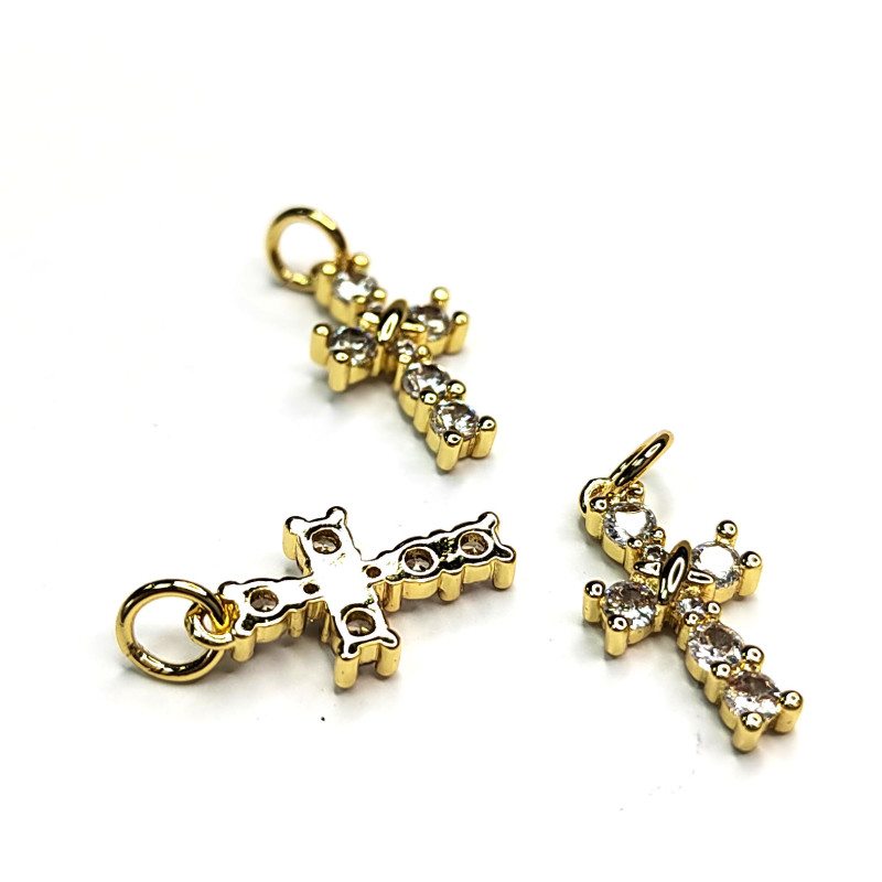 Подвеска Крестик с фианитами, 15х8 мм, штука