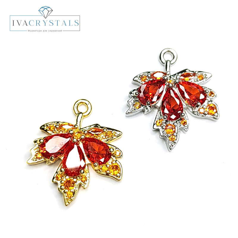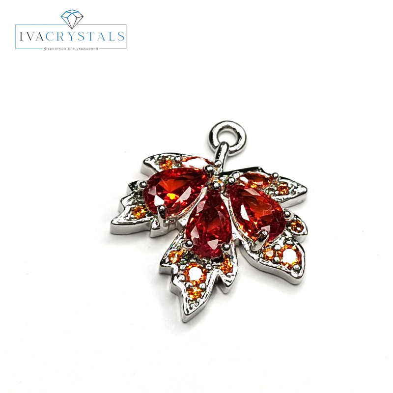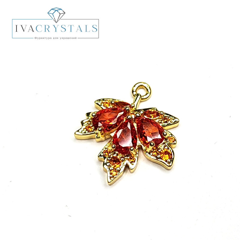 Подвеска Лист кленовый 19х17 мм с оранжевыми фианитами, штука