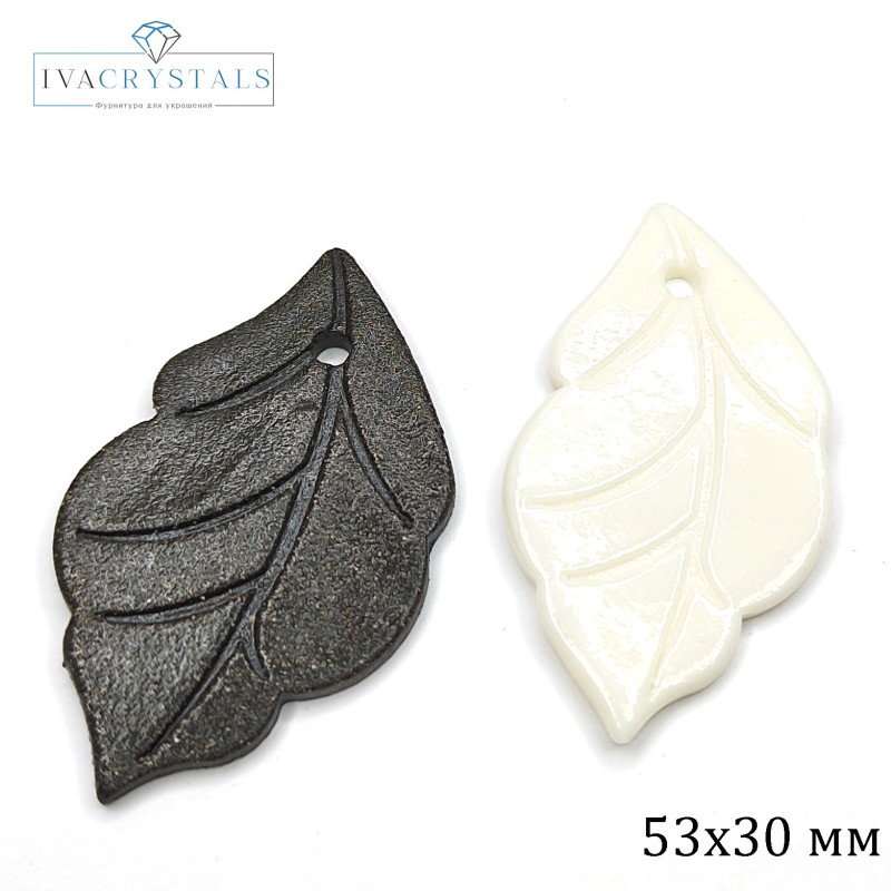 Купить Подвеска Лист 53х30 мм из белого фарфора и чёрной глины (ручная работа), штука вы можете в компании iva_crystals, оформив заказ в интернет магазине, или