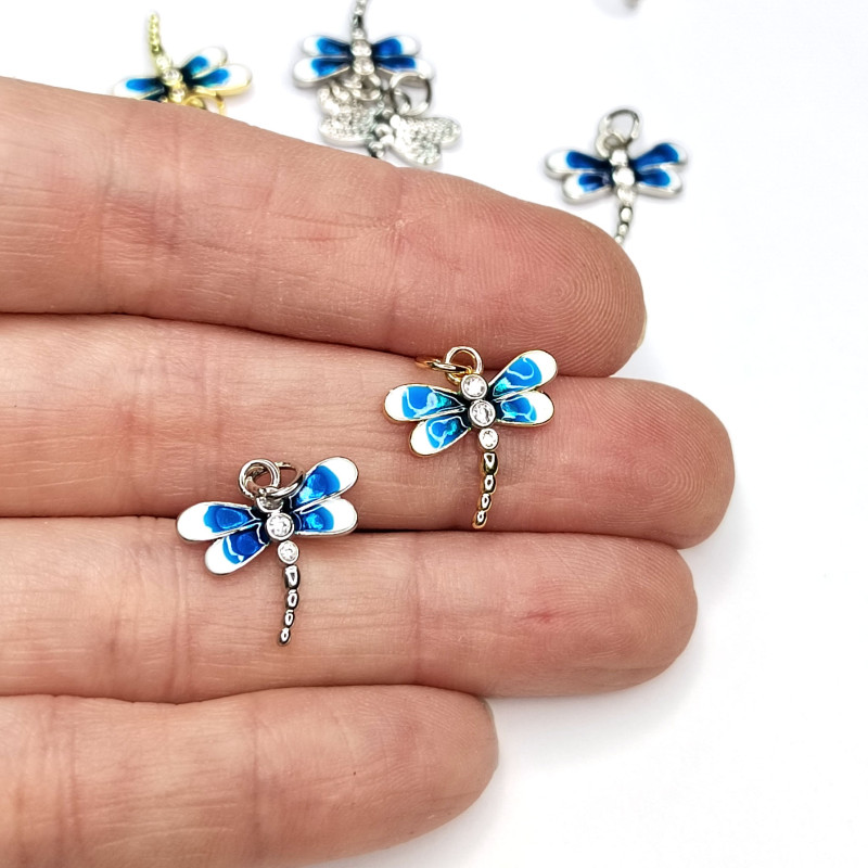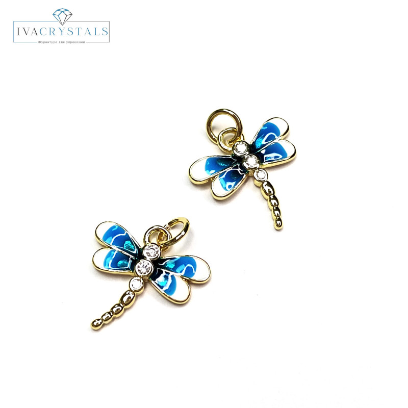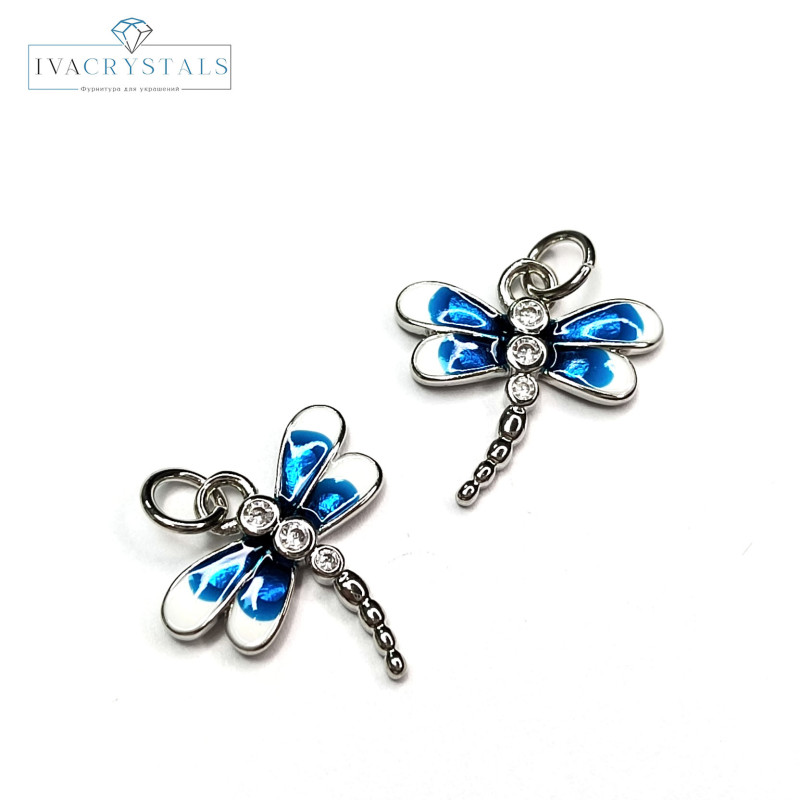 Подвеска Стрекоза с голубой эмалью 16х15 мм, штука