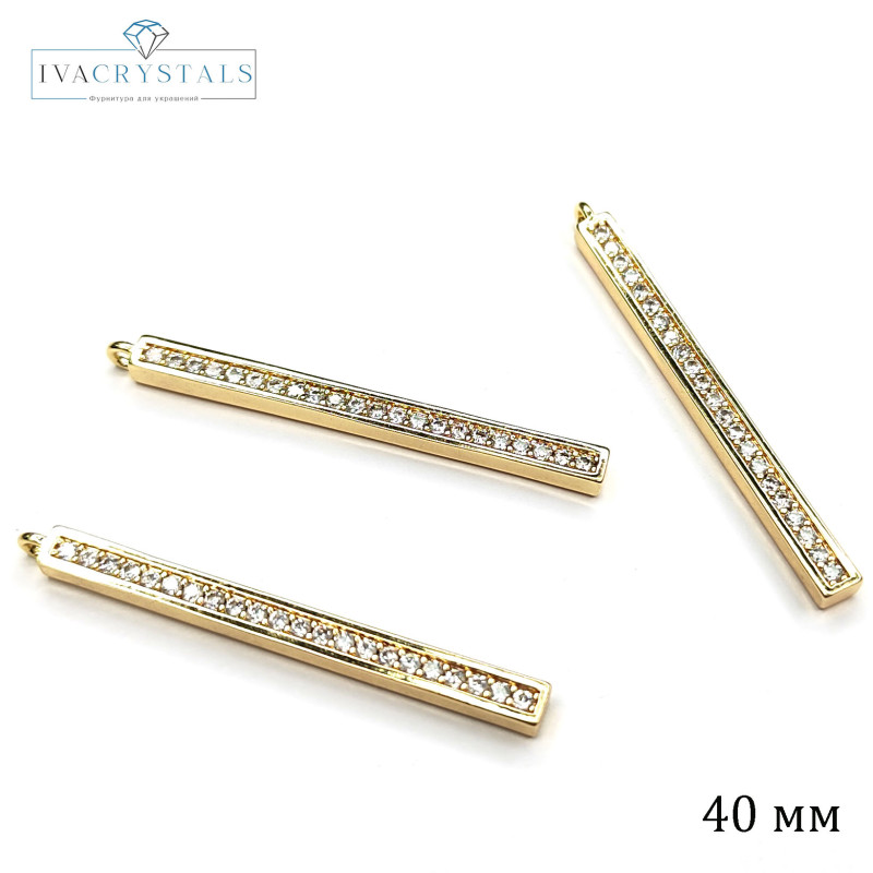 Подвеска палочка 40 мм с фианитами, штука