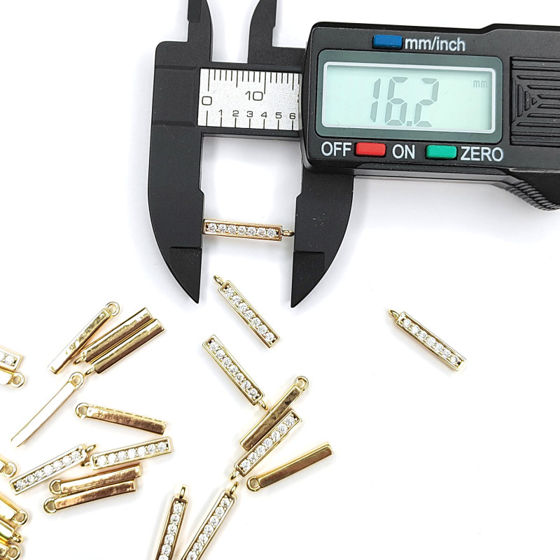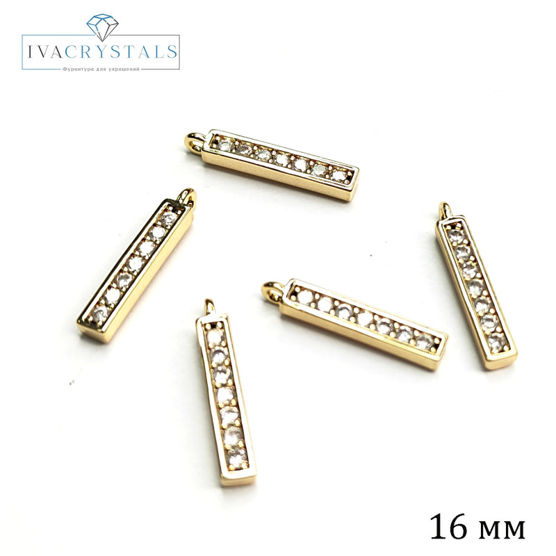 Подвеска палочка 16 мм с фианитами, покрытие позолоченное, штука