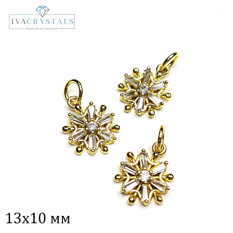 Подвеска Цветок 13х10 мм с фианитами, штука