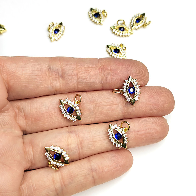 Подвеска Глаз 14х10 мм с синим фианитом, штука