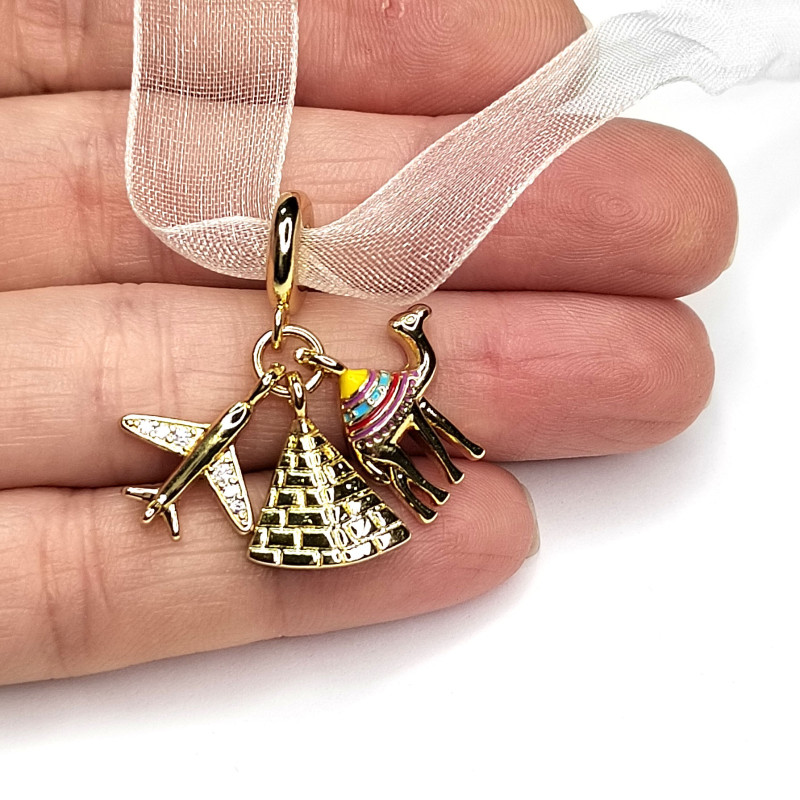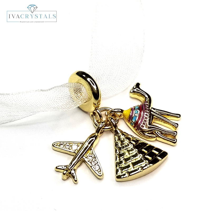 Купить Подвеска из трёх предметов Пирамида - Самолёт - Верблюд, 30 мм, покрытие Позолота вы можете в компании iva_crystals, оформив заказ в интернет магазине, или