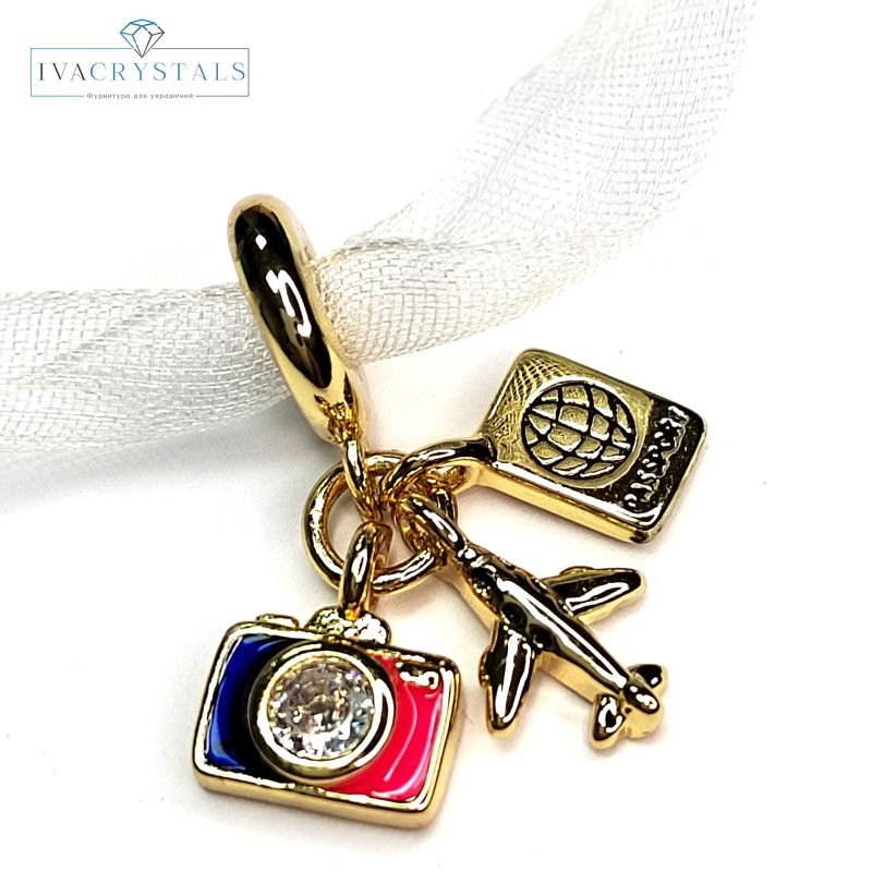 Купить Подвеска из трёх предметов Фотоаппарат - Самолёт - Паспорт, 25 мм, покрытие Позолота вы можете в компании iva_crystals, оформив заказ в интернет магазине, или