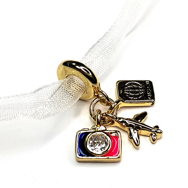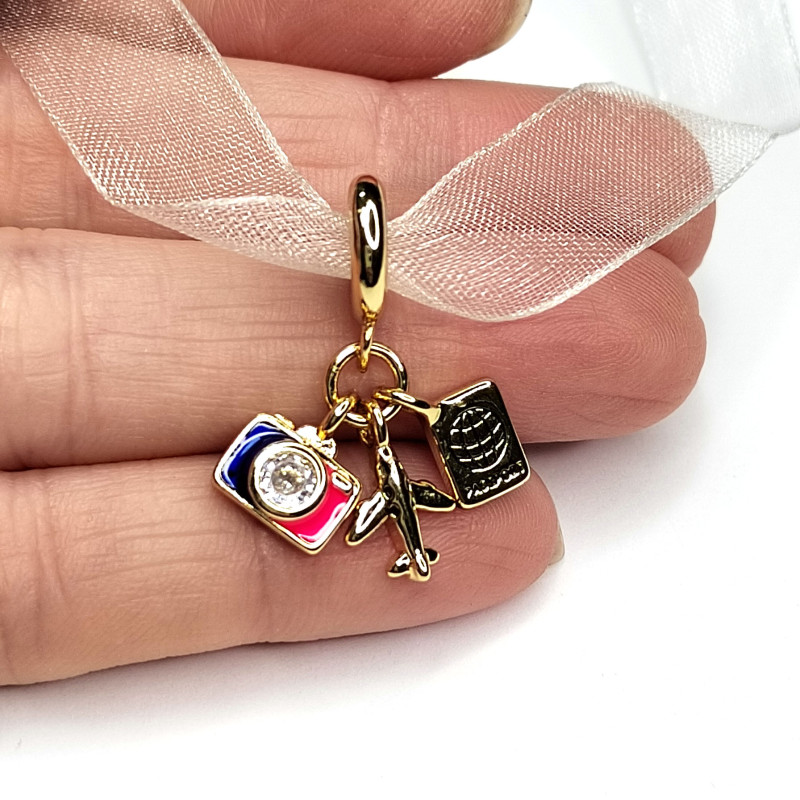 Подвеска из трёх предметов Фотоаппарат - Самолёт - Паспорт, 25 мм, покрытие Позолота