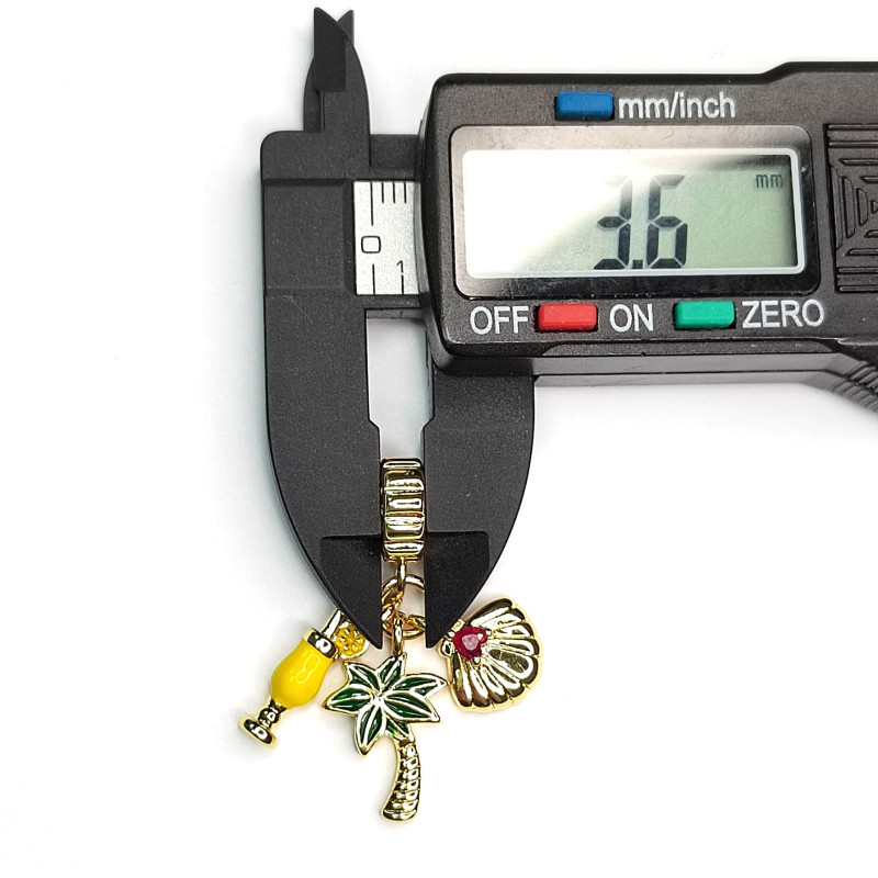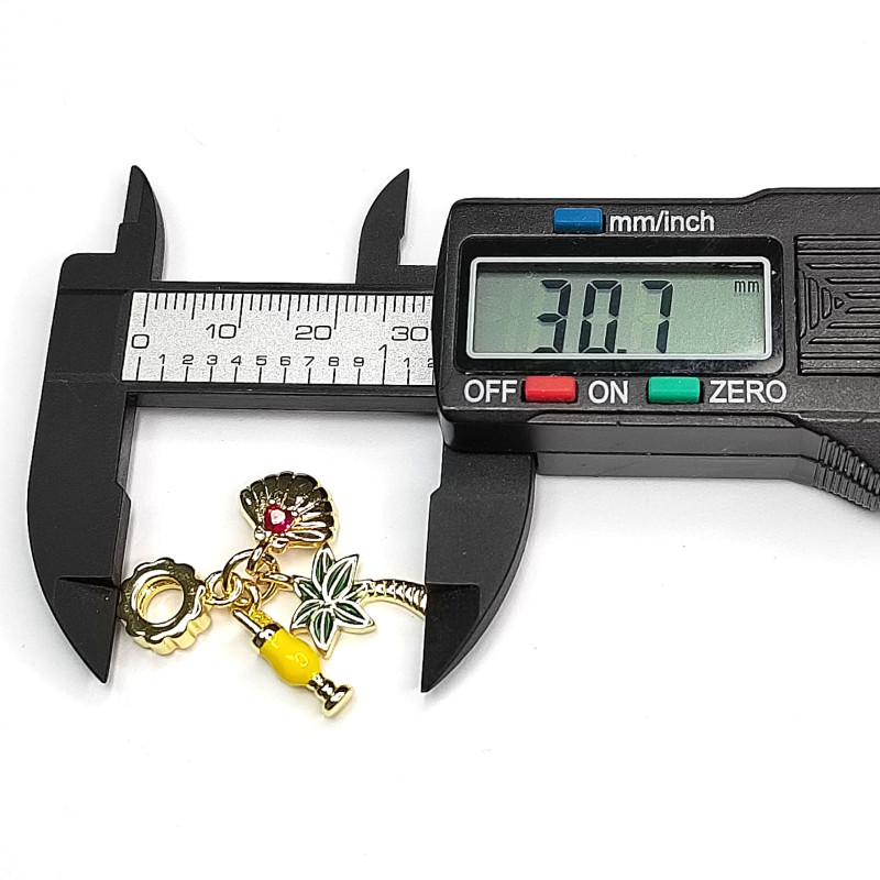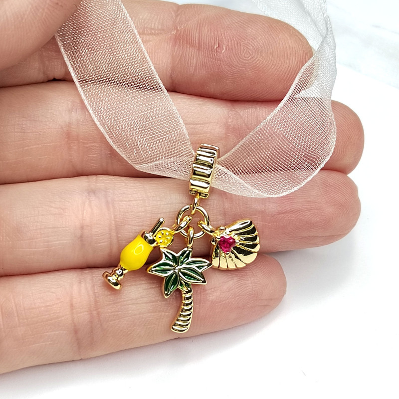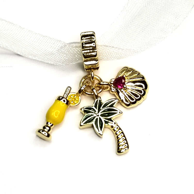 Подвеска из трёх предметов Пальма Веер и Коктейль, 30 мм, покрытие Позолота