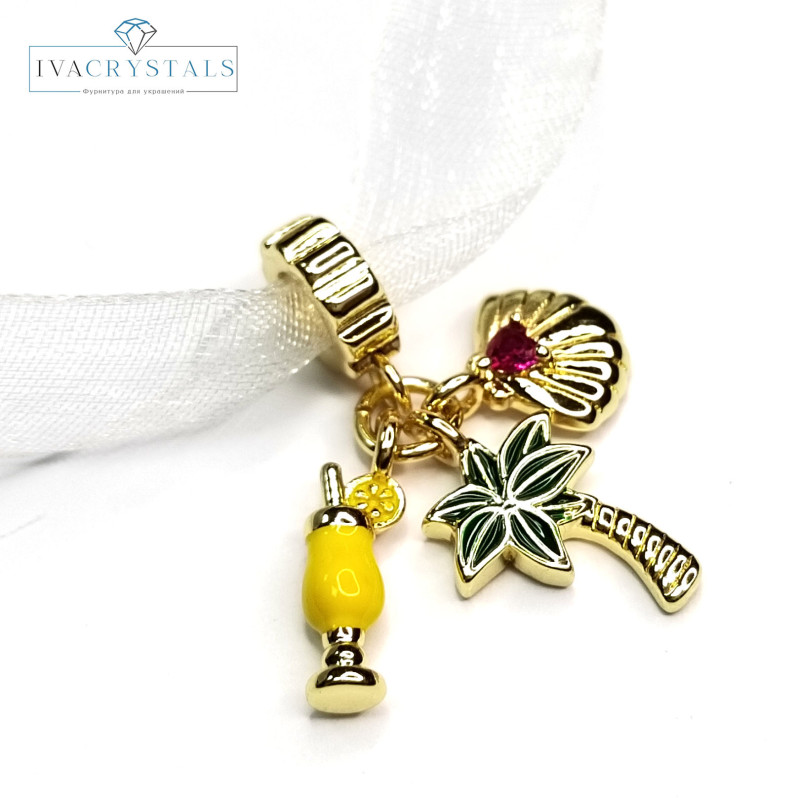 Купить Подвеска из трёх предметов Пальма Веер и Коктейль, 30 мм, покрытие Позолота вы можете в компании iva_crystals, оформив заказ в интернет магазине, или