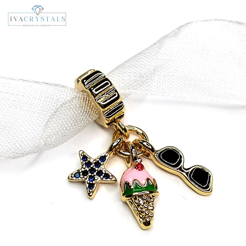 Купить Подвеска из трёх предметов Мороженое - Звезда - Очки, 25 мм, покрытие Позолота вы можете в компании iva_crystals, оформив заказ в интернет магазине, или