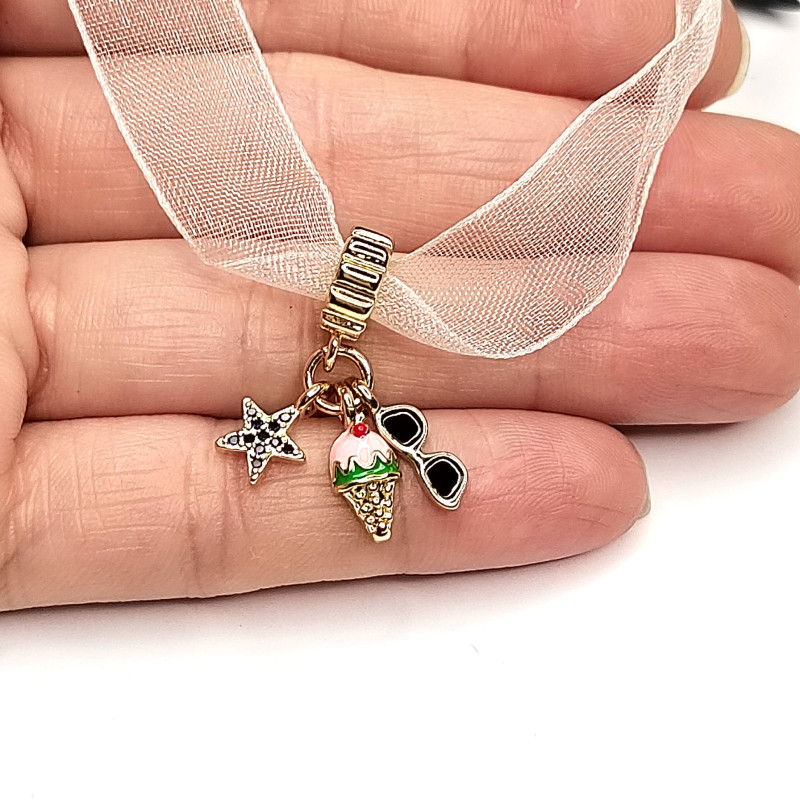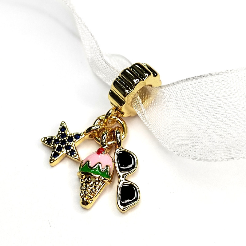Подвеска из трёх предметов Мороженое - Звезда - Очки, 25 мм, покрытие Позолота