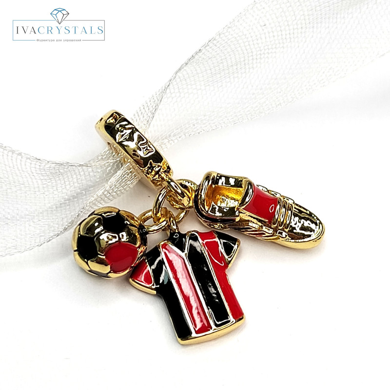 Купить Подвеска из трёх предметов Футболка - Мяч - Кеды, 25 мм, покрытие Позолота вы можете в компании iva_crystals, оформив заказ в интернет магазине, или