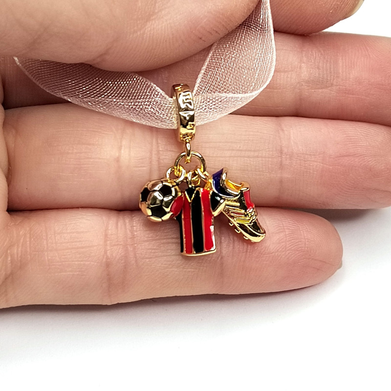Подвеска из трёх предметов Футболка - Мяч - Кеды, 25 мм, покрытие Позолота