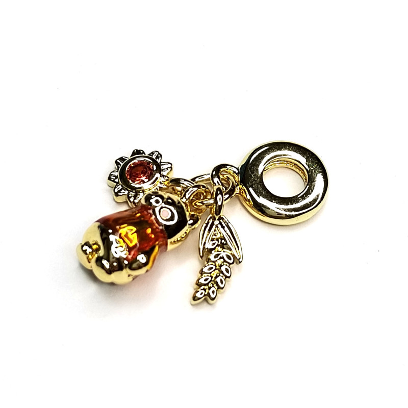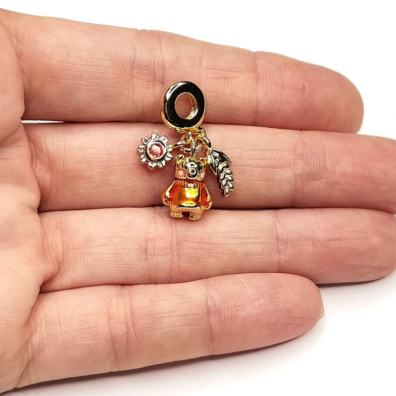 Подвеска из трёх предметов Мишка - Подсолнух - Колосок, 26 мм, покрытие Позолота