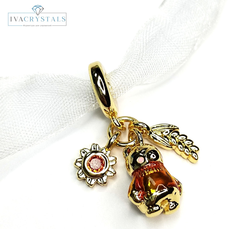 Купить Подвеска из трёх предметов Мишка - Подсолнух - Колосок, 26 мм, покрытие Позолота вы можете в компании iva_crystals, оформив заказ в интернет магазине, или