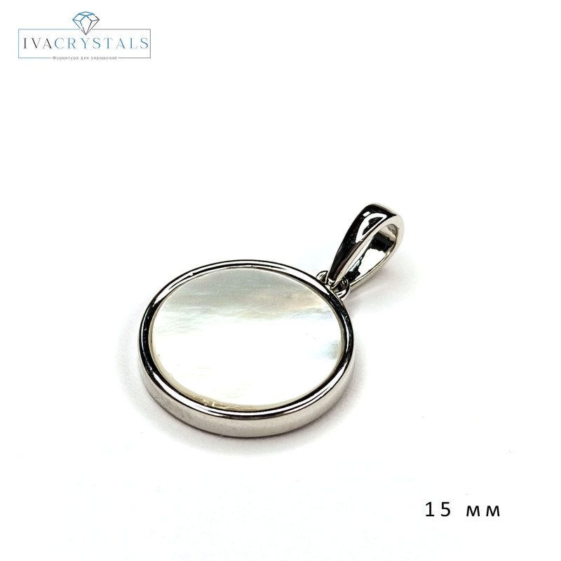 Подвеска Круг 15 мм с белым перламутром, штука