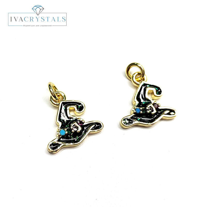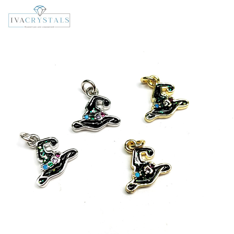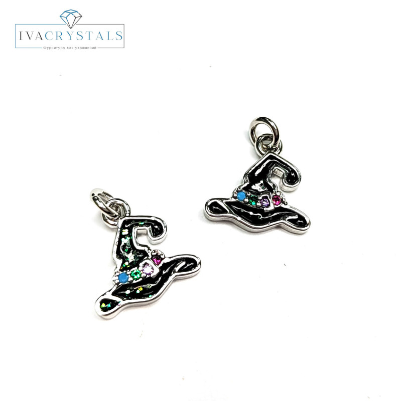 Купить Подвеска шляпа ведьмы 11 мм с чёрной эмалью и фианитами, штука вы можете в компании iva_crystals, оформив заказ в интернет магазине, или