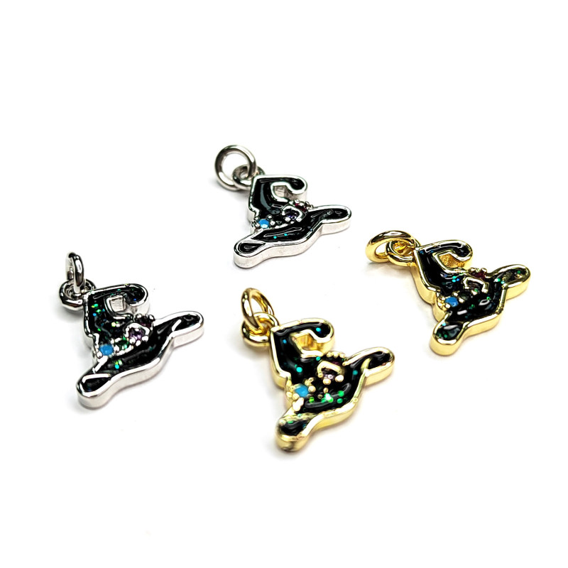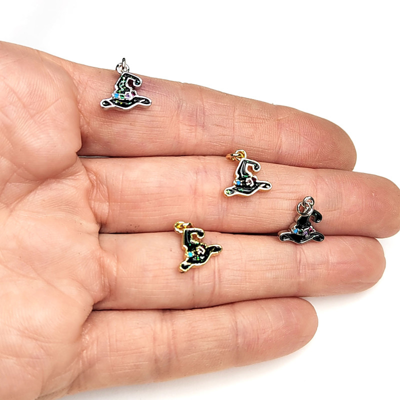 Подвеска шляпа ведьмы 11 мм с чёрной эмалью и фианитами, штука
