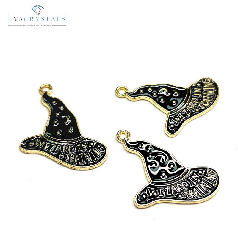 Купить Подвеска шляпа ведьмы 30х24 мм с чёрной эмалью с позолоченным покрытием, штука вы можете в компании iva_crystals, оформив заказ в интернет магазине, или