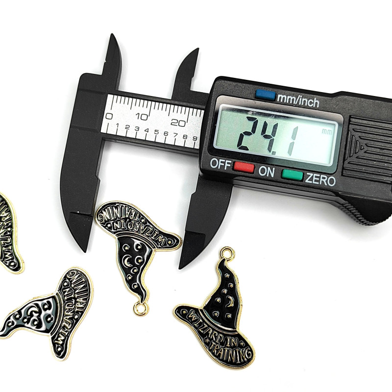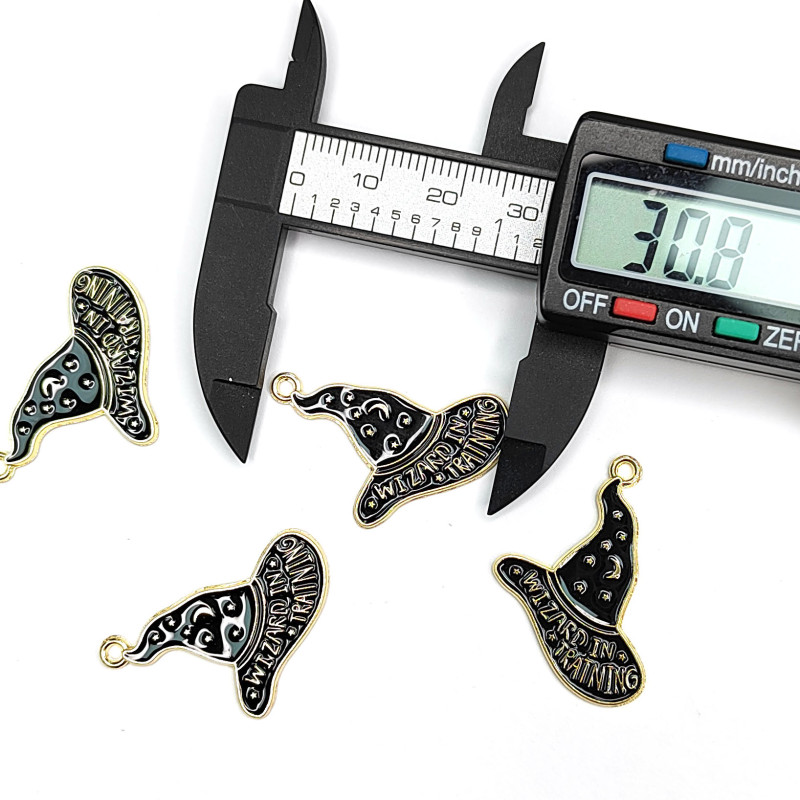 Подвеска шляпа ведьмы 30х24 мм с чёрной эмалью с позолоченным покрытием, штука