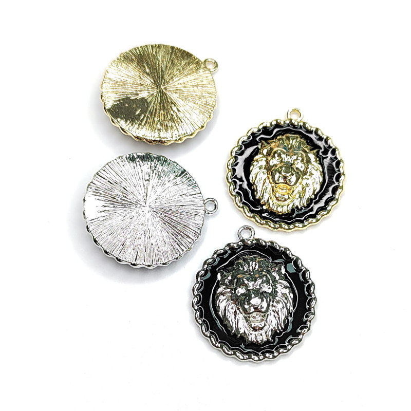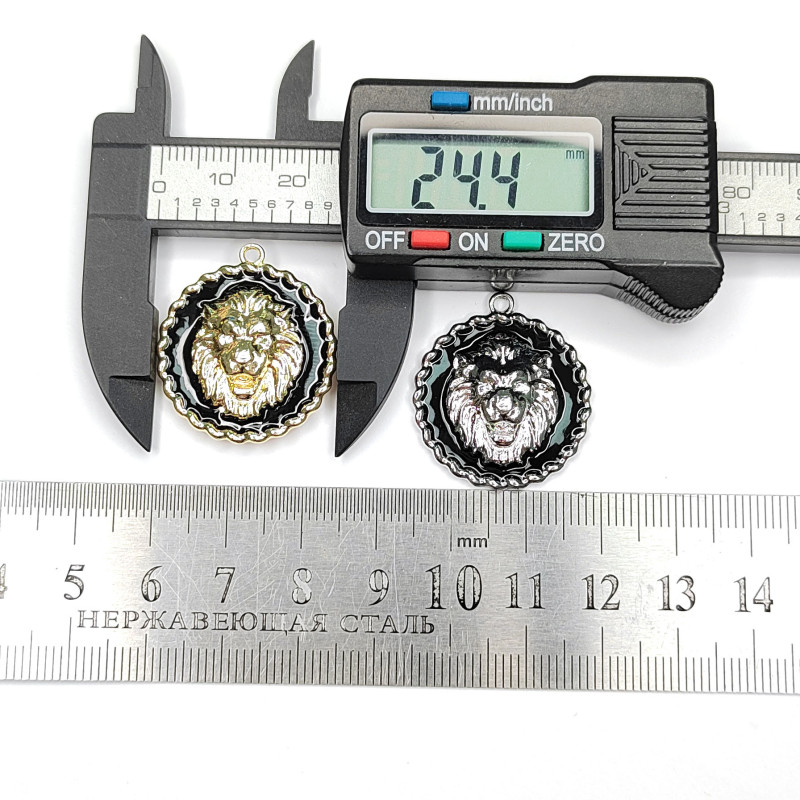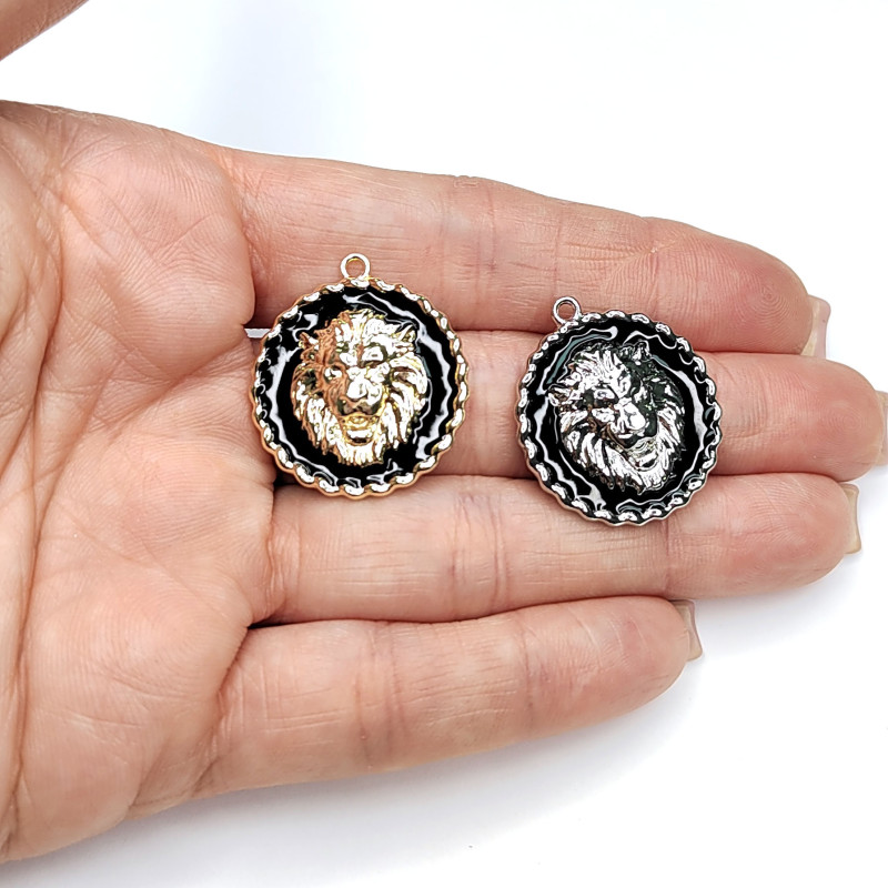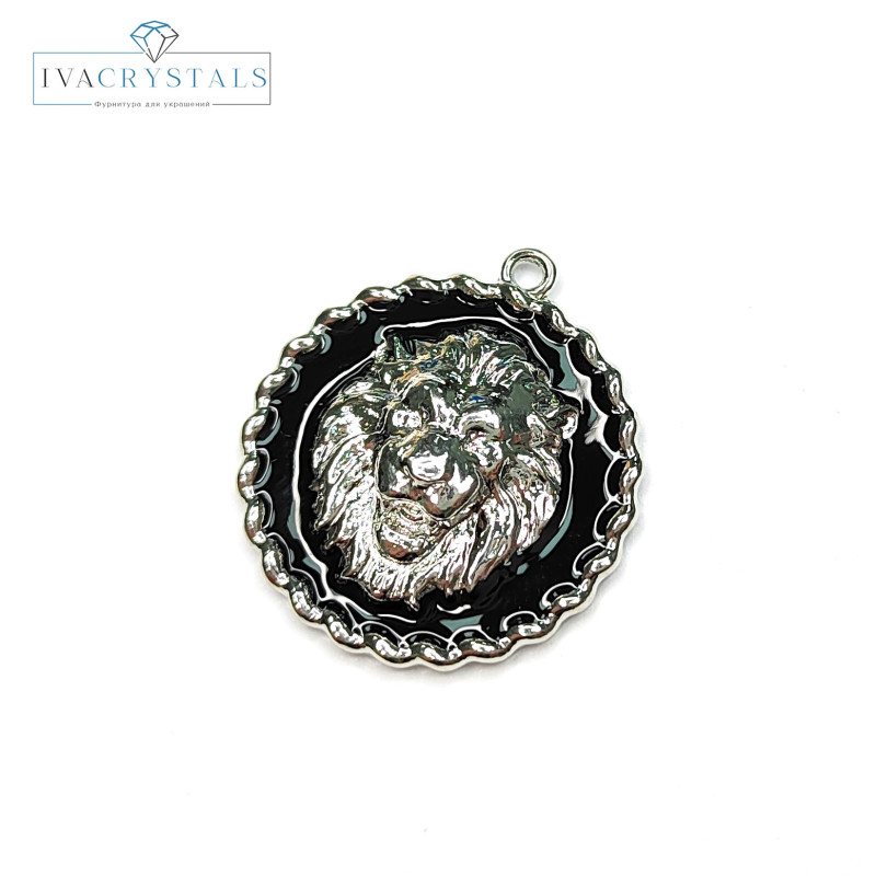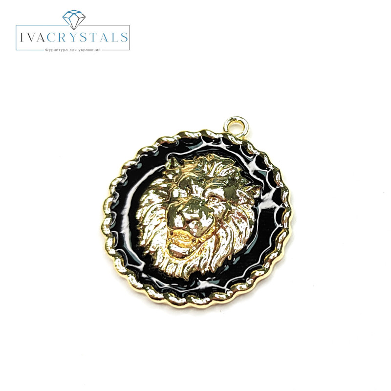 Подвеска Лев с черной эмалью 24 мм, штука