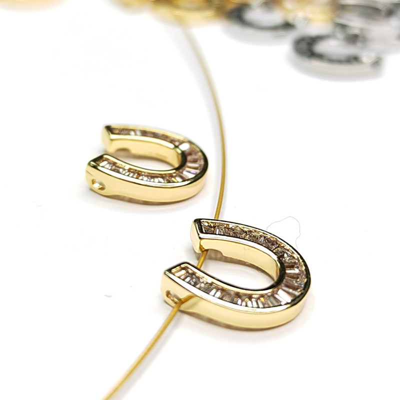 Подвеска - разделитель Подкова 12х12 мм с фианитами, ШТУКА