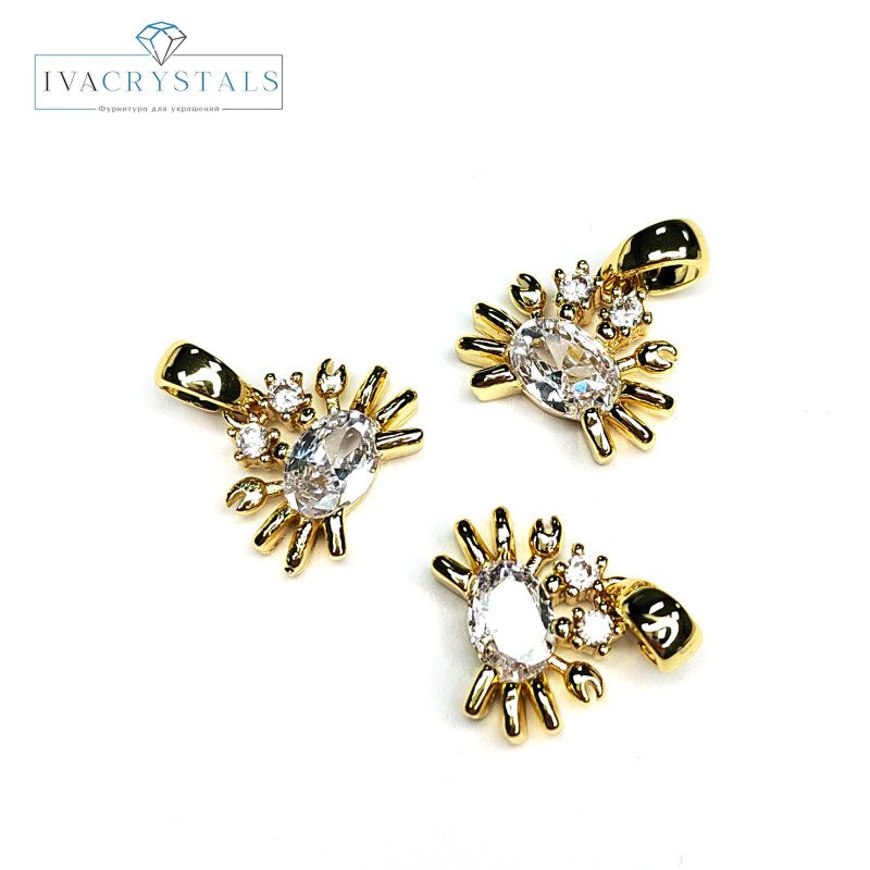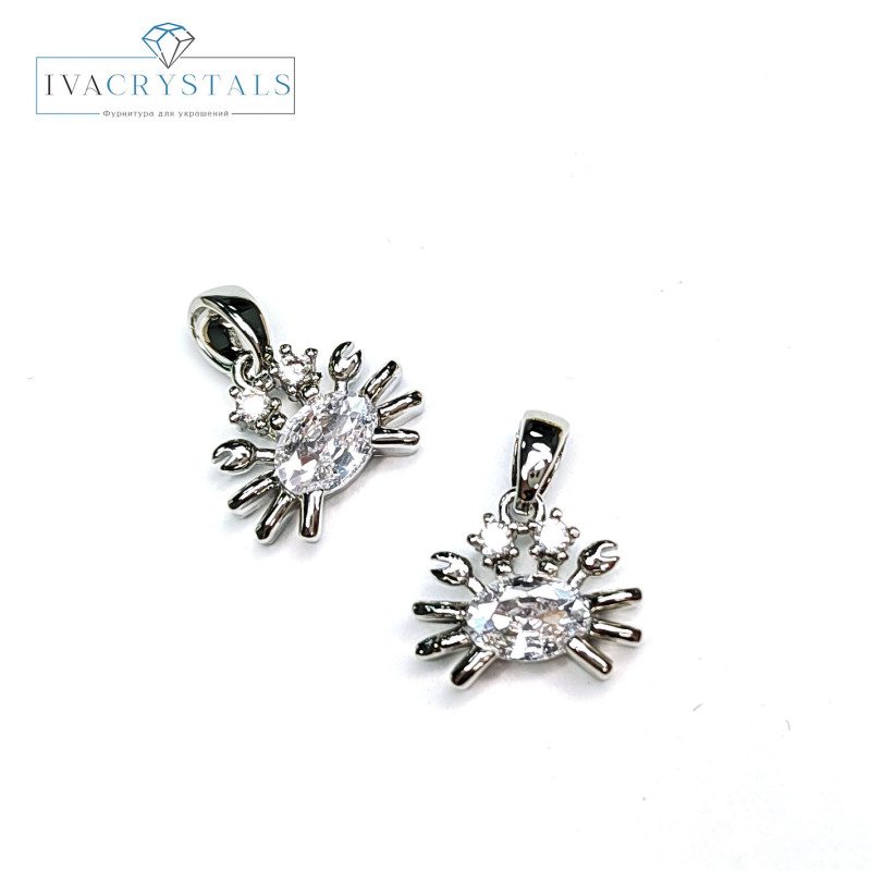 Купить Подвеска 13х11 мм Крабик с фианитами, штука вы можете в компании iva_crystals, оформив заказ в интернет магазине, или