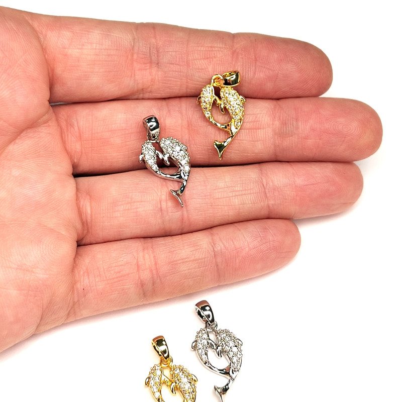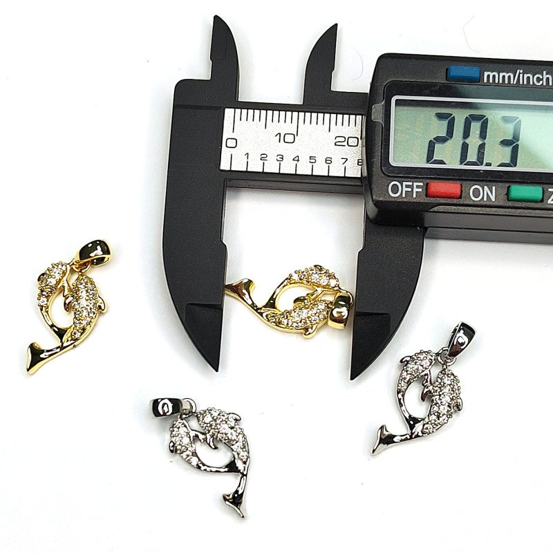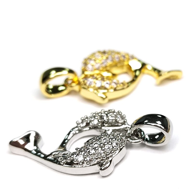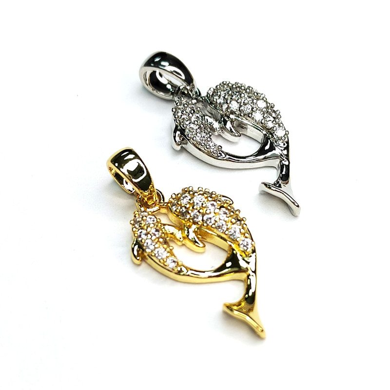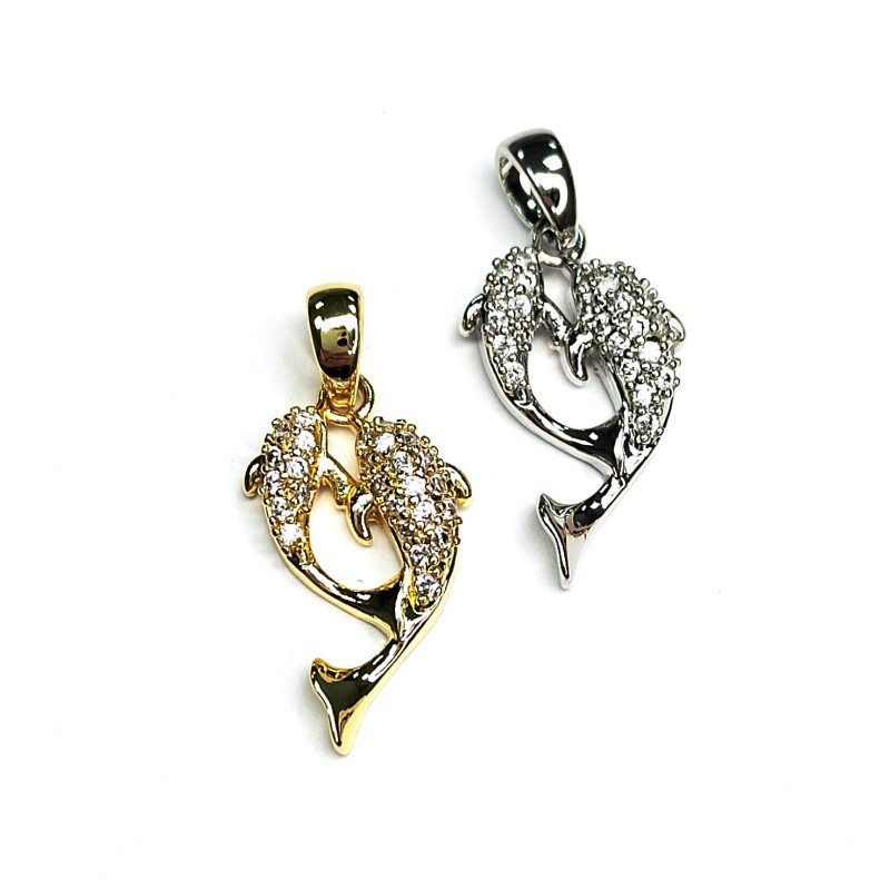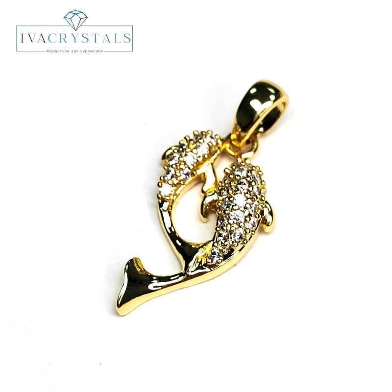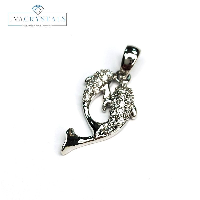 Подвеска Рыбки (дельфины) с фианитами 20х11 мм, штука