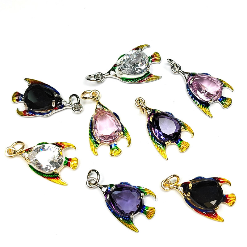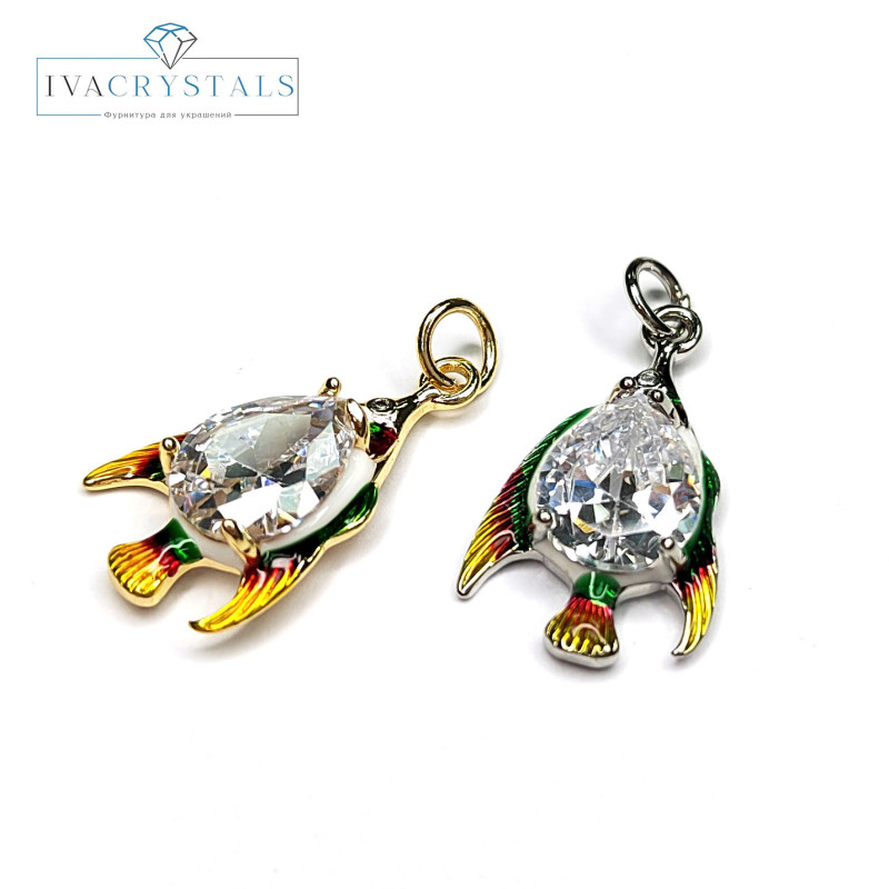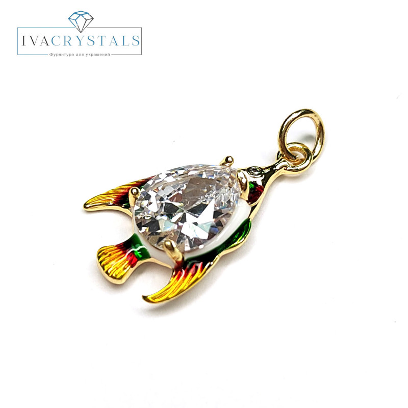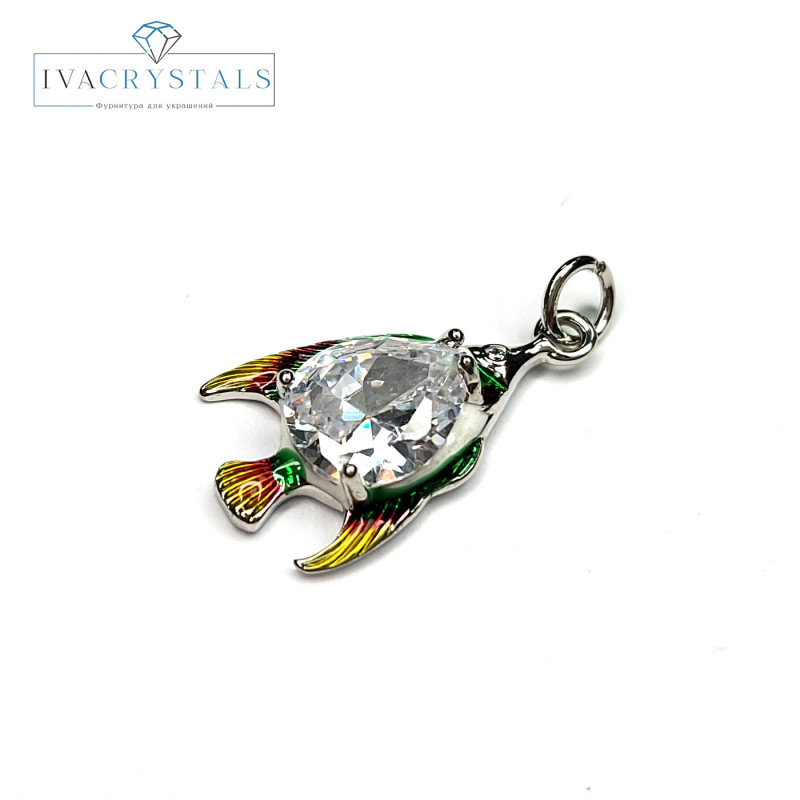 Подвеска металлическая Рыбка с прозрачным фианитом и эмалью